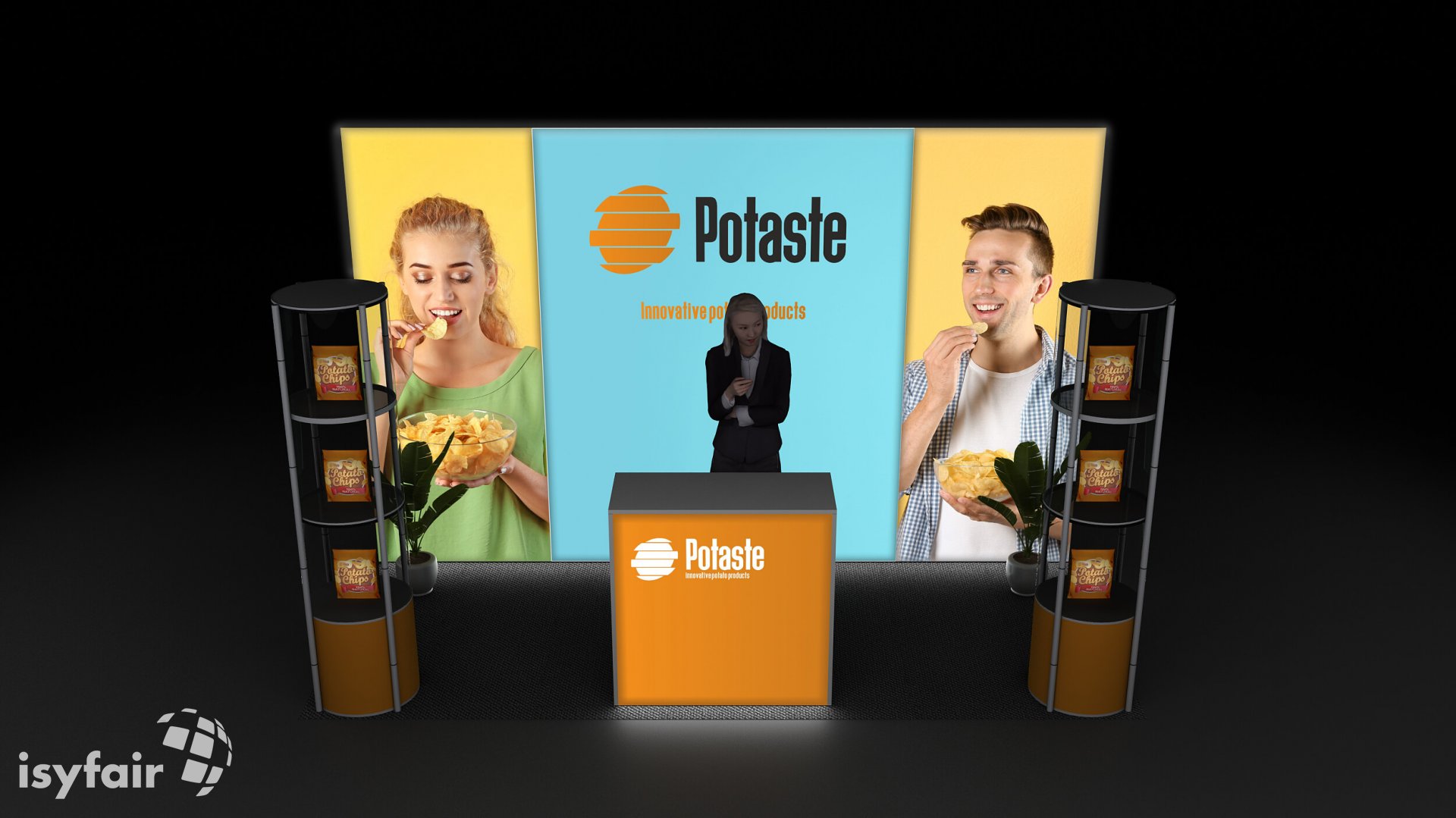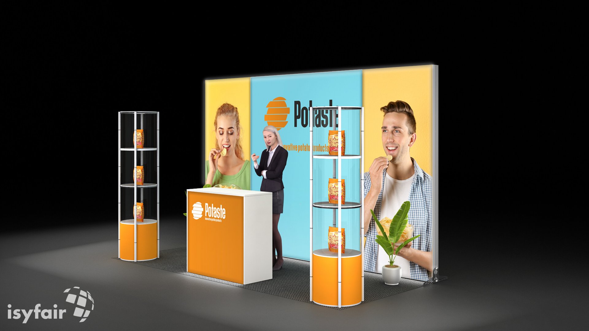All graphics / prints in this exhibition stand design are included. - Lighting