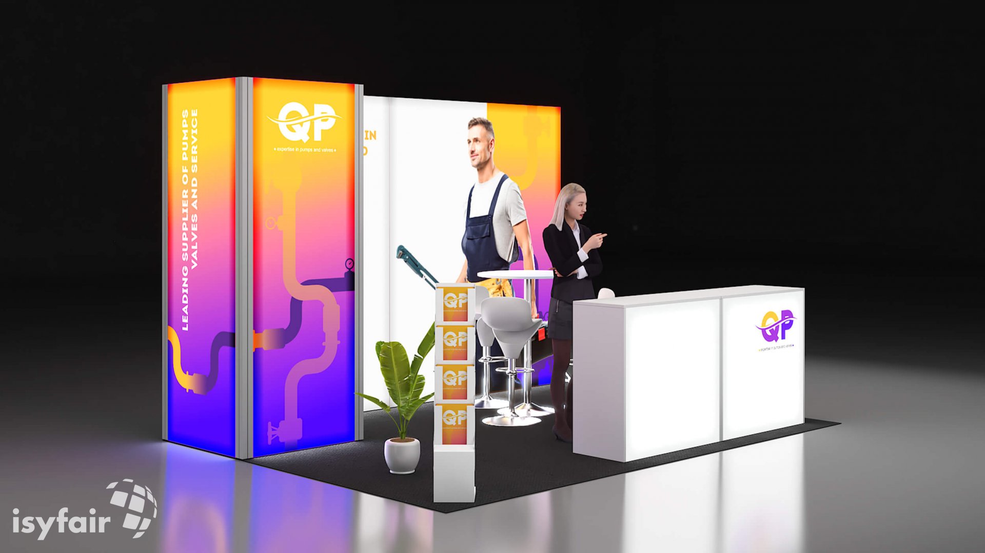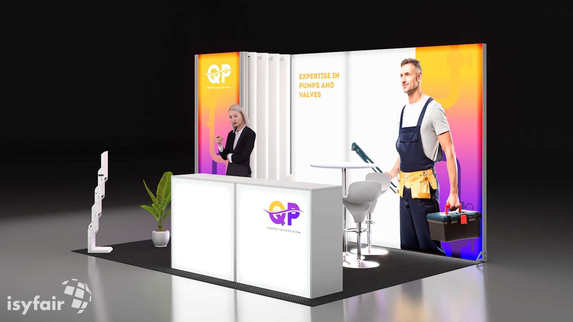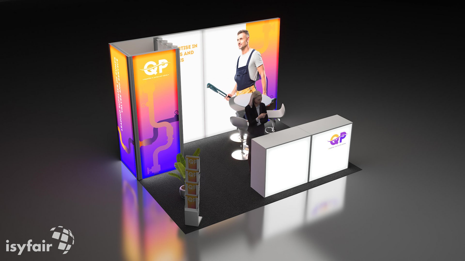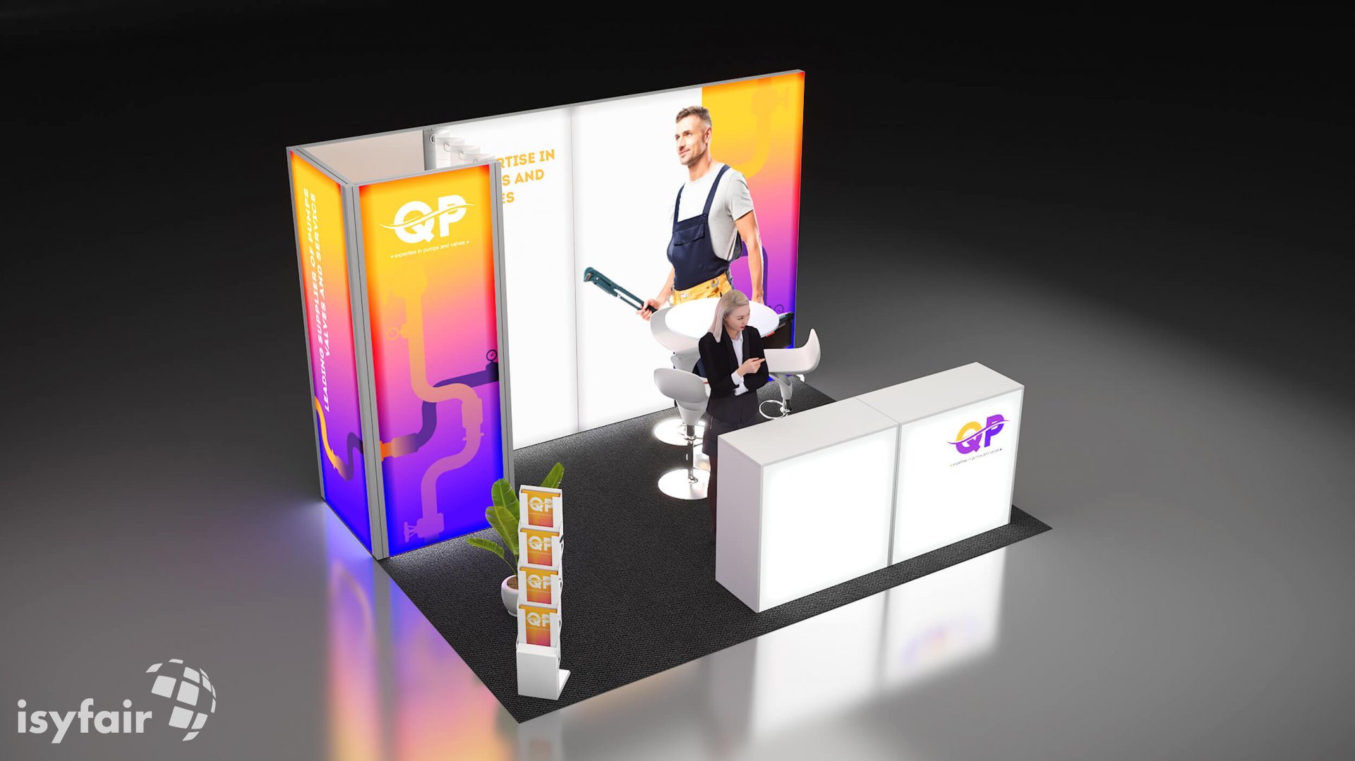 All graphics / prints in this exhibition stand design are included. - Lighting