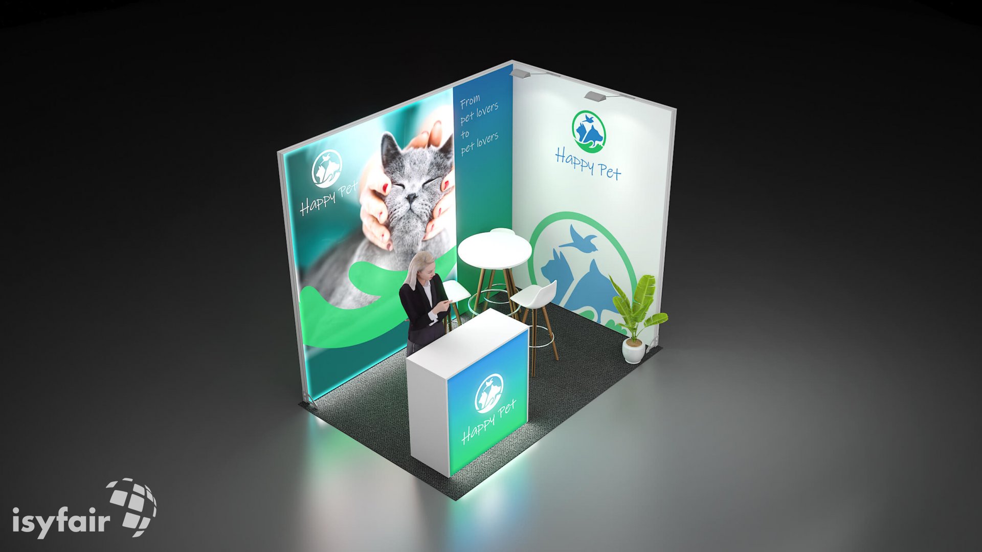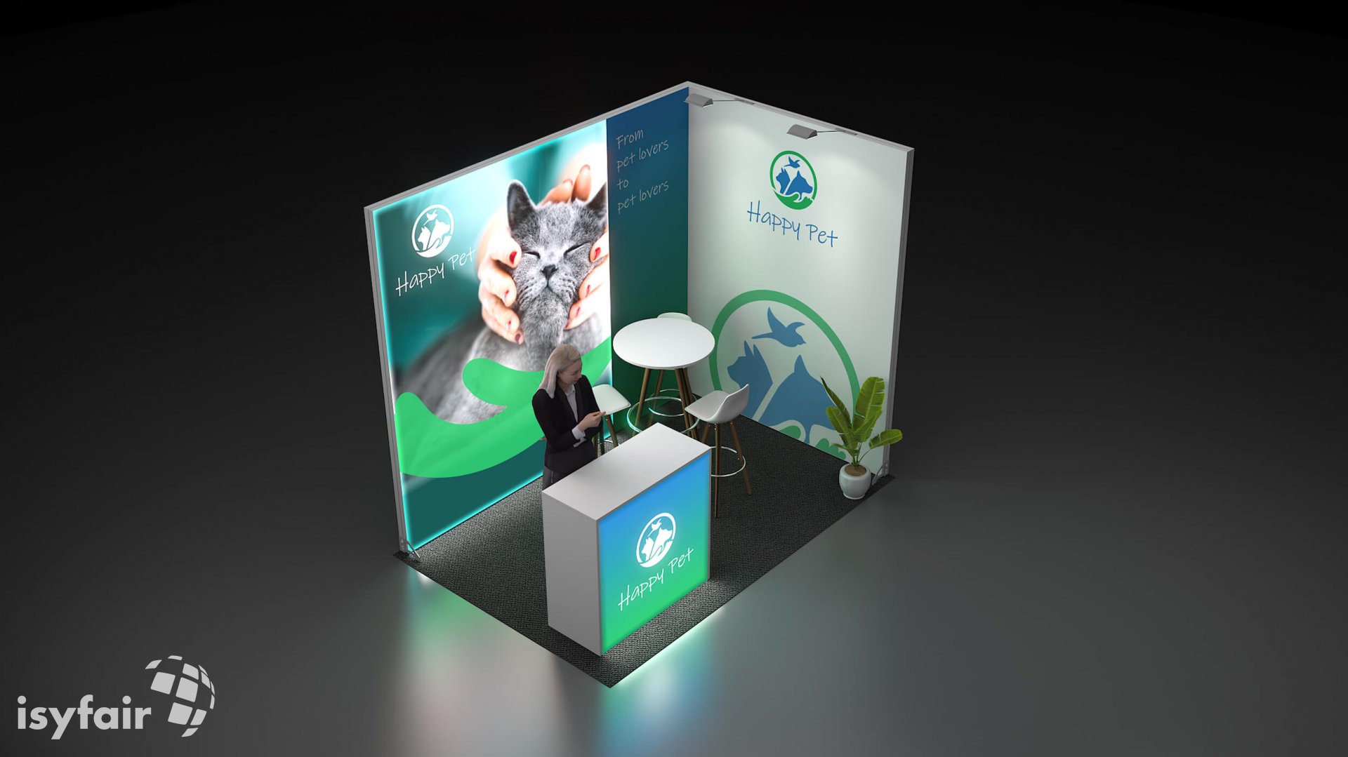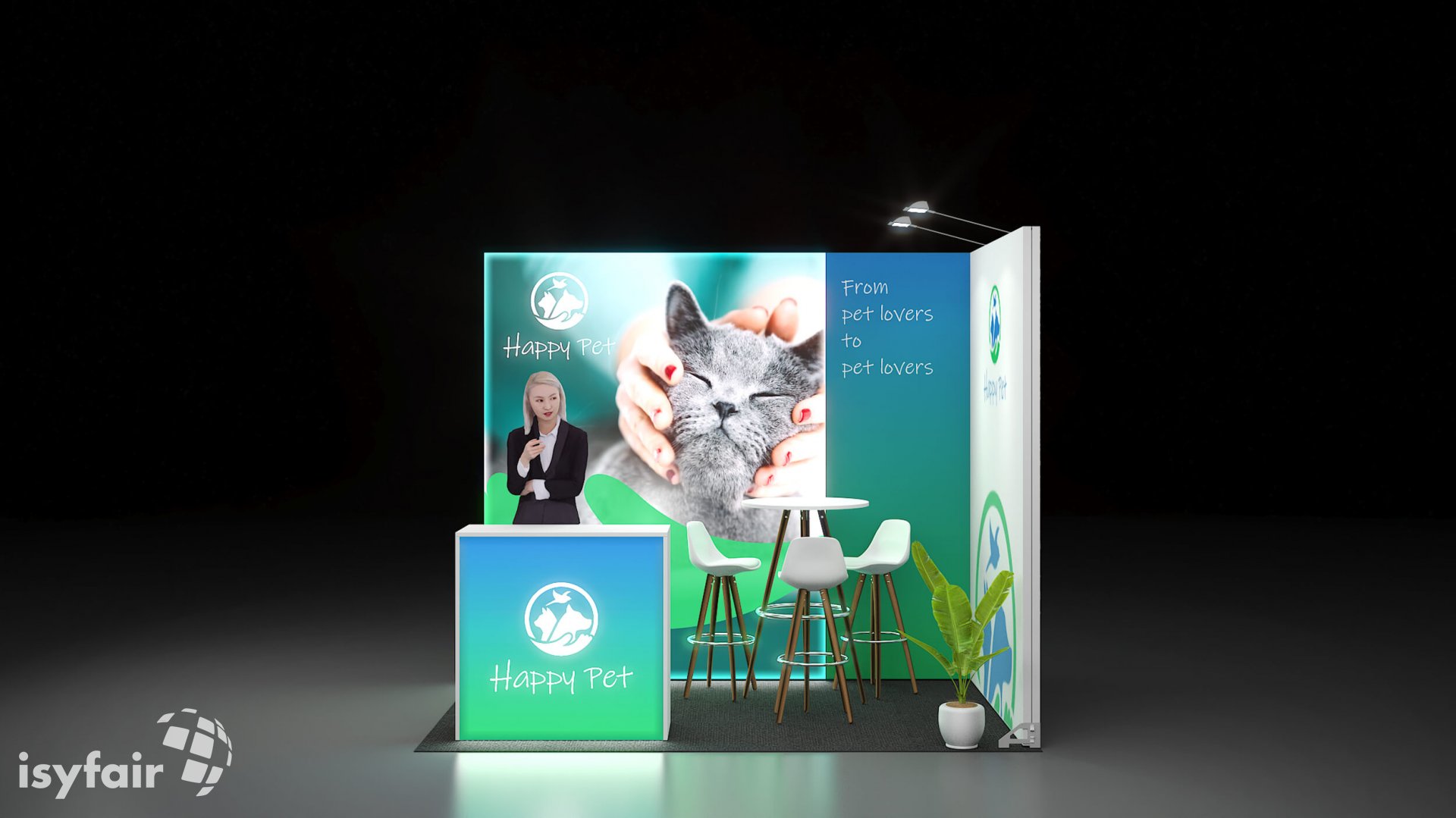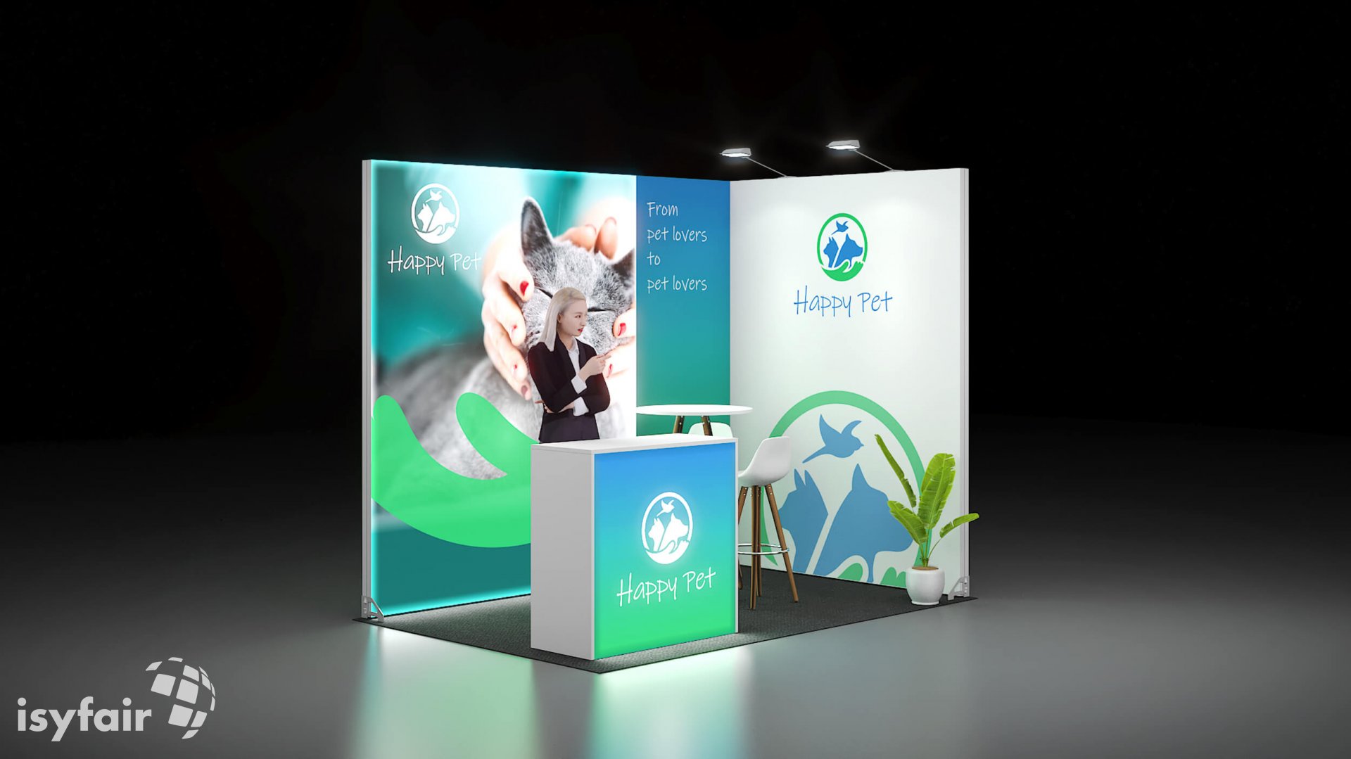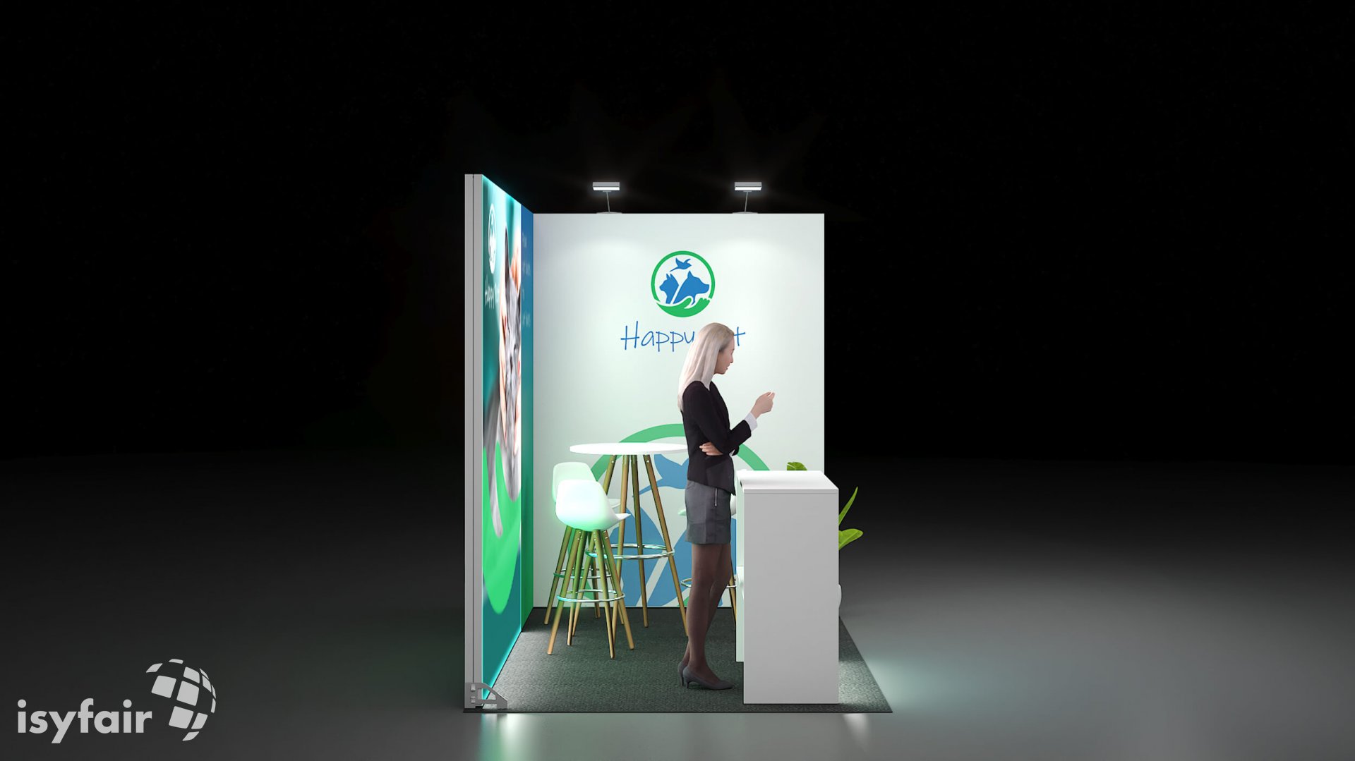 All graphics / prints in this exhibition stand design are included. - Lighting