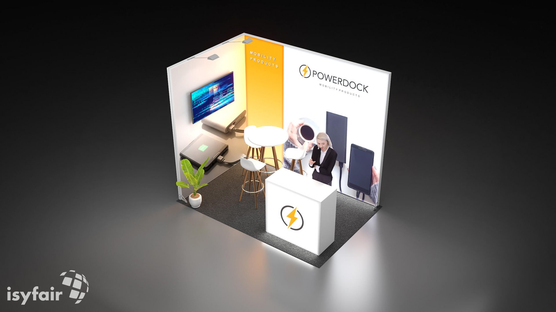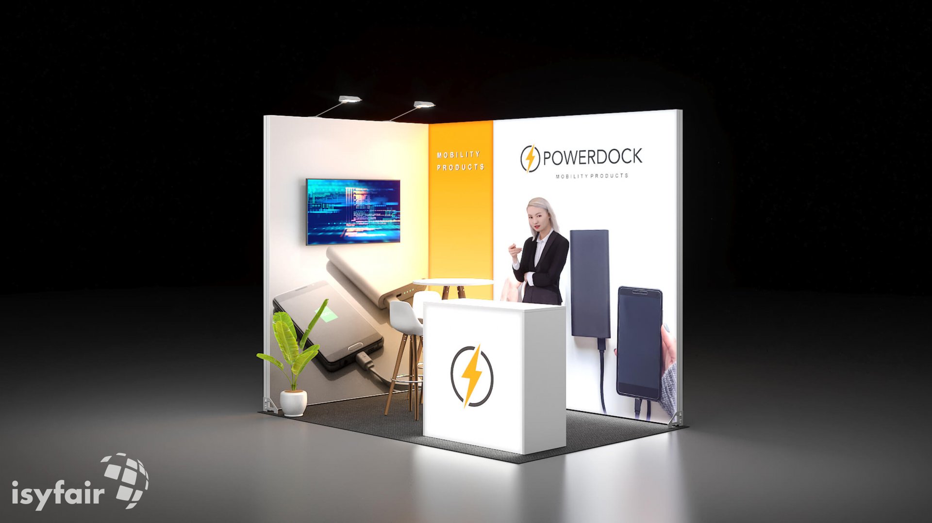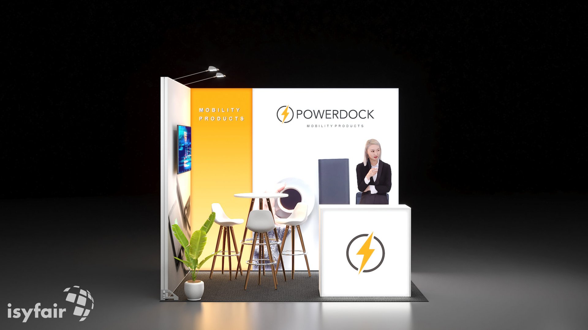 All graphics / prints in this exhibition stand design are included. - Lighting