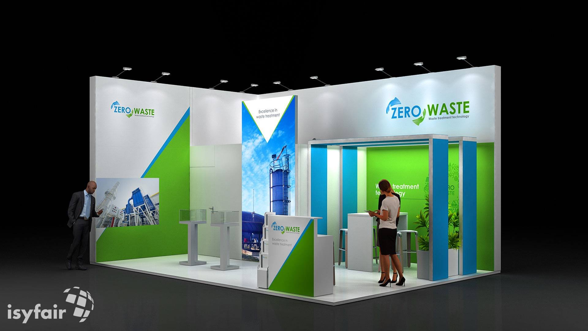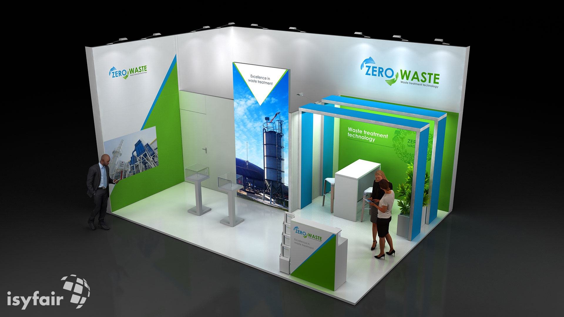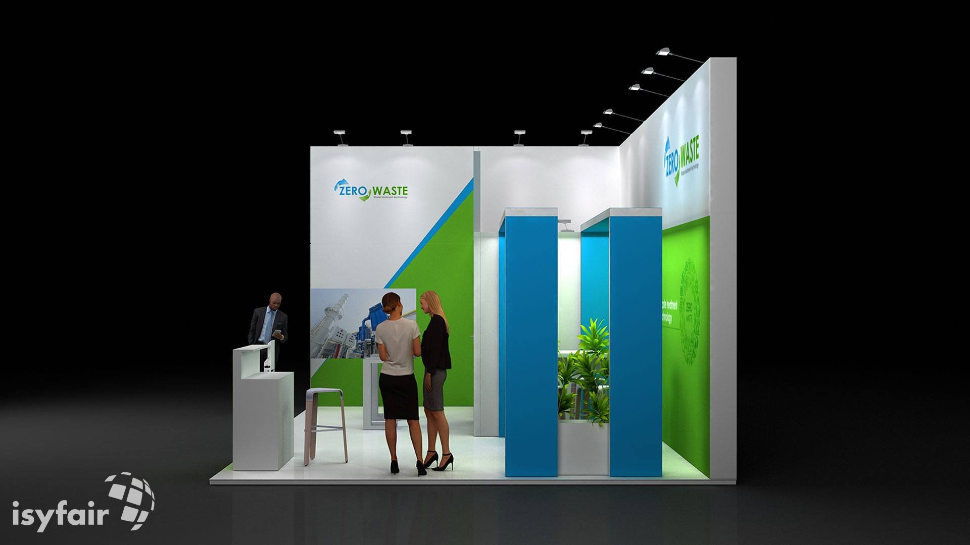 All graphics / prints in this exhibition stand design are included. - Lighting