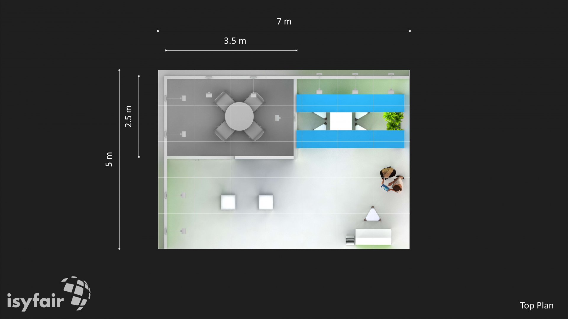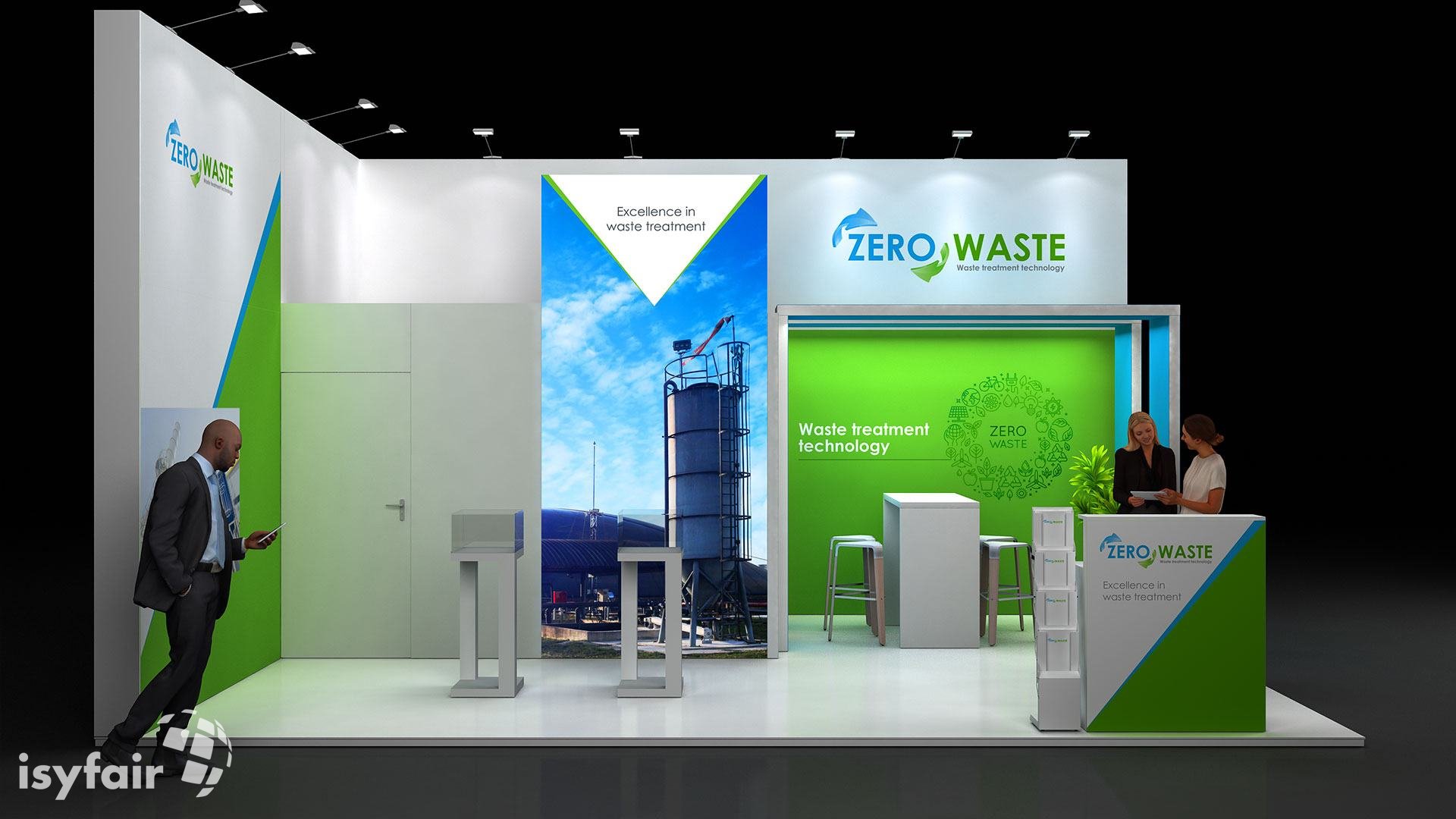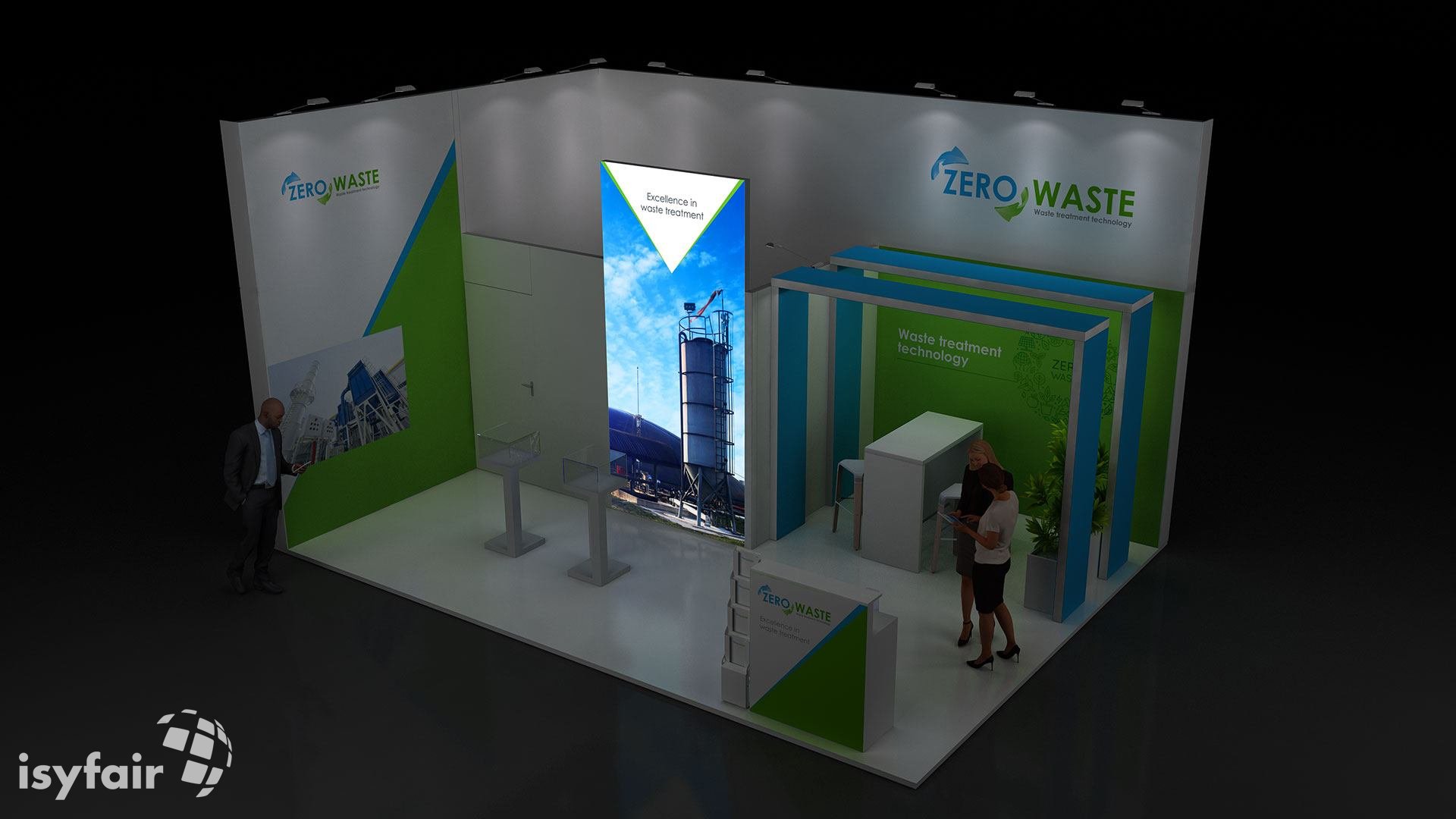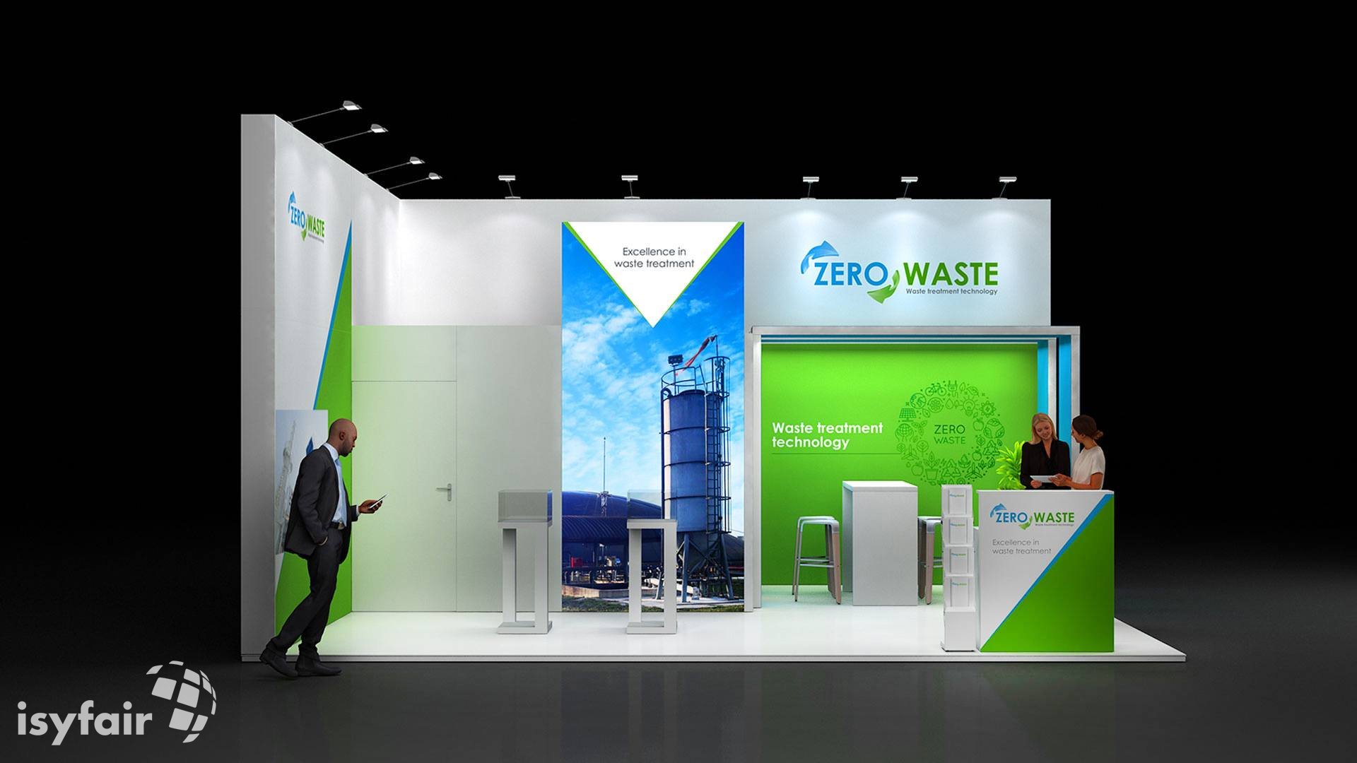 All graphics / prints in this exhibition stand design are included. - Lighting